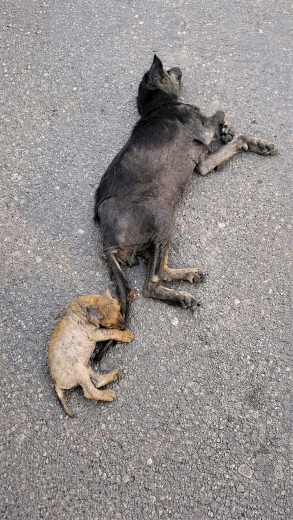 It begins with a mother dog whose world had narrowed to a single purpose: keeping her puppy safe. Hunger followed her every step. Exhaustion weighed on her body. Yet she continued forward with quiet resolve, spending every remaining ounce of energy on her child, even when there was nothing left for herself.