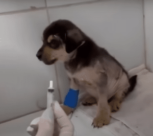 When the puppy was lifted, he barely reacted. His eyes were dull with exhaustion, his body limp from hunger. Wrapped in warm arms, he was rushed to a veterinary clinic where a team stood ready to give him a chance.