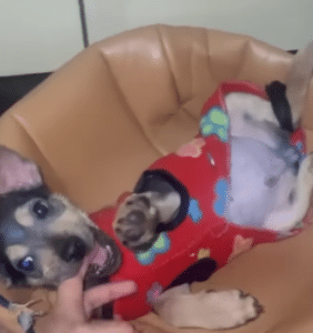 He was fed small, carefully measured meals so his body could adjust safely. Every feeding mattered. Every moment of rest counted. Surrounded by calm voices and gentle hands, the puppy began to understand something important.