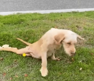 On a busy afternoon, when cars flowed endlessly through a crowded intersection, a couple noticed something that made them slow down. At first, it looked like a dog struggling to cross the road. But within seconds, the truth became impossible to ignore. The dog wasn’t limping. She was dragging her back legs behind her, pulling her body forward inch by inch with pure determination. Every movement looked painful. Every second felt urgent.