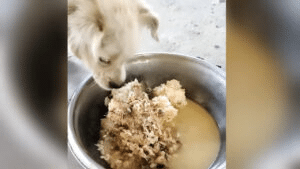 That evening, Lucky followed the fisherman home, hesitant at first, overwhelmed by unfamiliar walls and sounds. Nothing was rushed. A simple meal was prepared and set down gently. Lucky ate slowly, gratefully. That small act—warm food, offered without condition—marked the beginning of a new life. For the first time in a long while, Lucky slept somewhere safe.