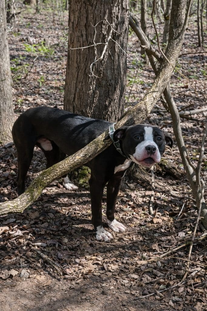 A passerby noticed something that didn’t belong. Obie wasn’t exploring the woods or moving freely. He was confined, vulnerable, and completely dependent on the kindness of whoever noticed him next.