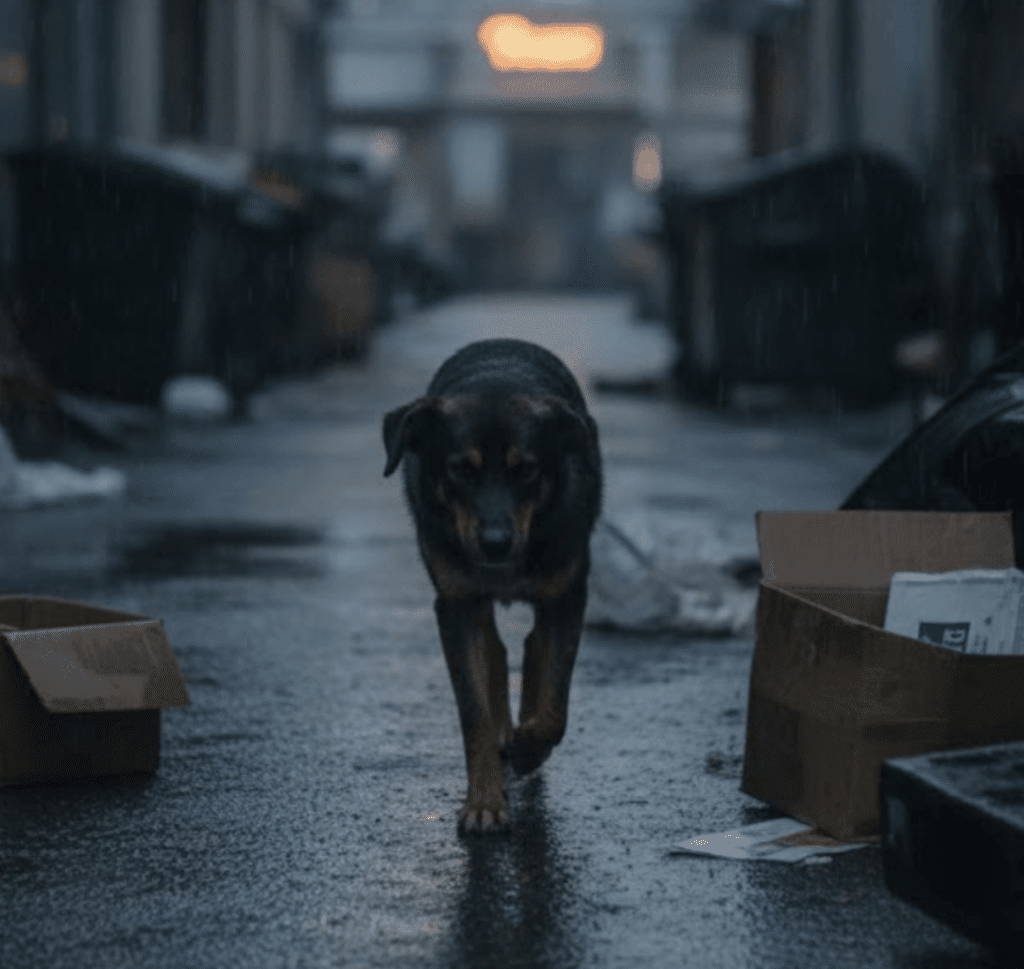 Every city has places most people pass without seeing—shadowed alleys behind busy shops, narrow gaps beneath overpasses, forgotten spaces where life continues quietly. It was in one of those overlooked corners that Luna lived. She had no home, no family, and no guarantees beyond what instinct could provide.