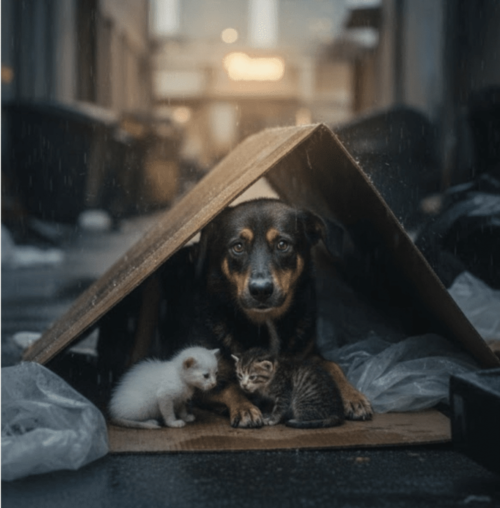 By morning, the rain had stopped. The city moved on. But in that forgotten corner, something had changed. Luna, a stray with no one to depend on, had become a mother.
