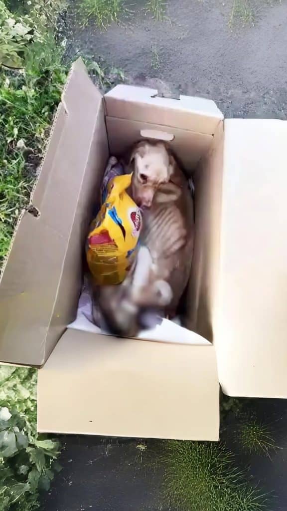The woman spoke softly, unsure the dog could hear. When she gently lifted her from the box, the dog didn’t resist. She didn’t flinch or struggle. She relaxed completely, as if surrendering to warmth used the last of her strength.