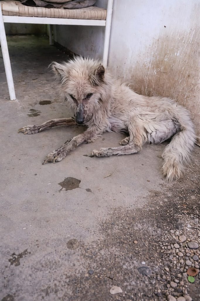 When Marsik arrived at the shelter, everything seemed to slow down. He didn’t react to unfamiliar voices or sudden movement. His body sagged as though standing required more strength than he had. Thick, damp fur clung to his frame, hiding just how thin he had become.