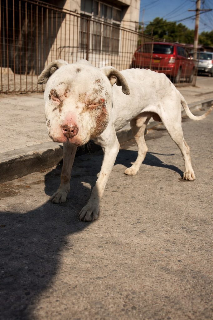 When rescuers first noticed him drifting along the edge of the road, it was hard to recognize him as a dog. His body was painfully thin, his steps slow and uncertain, as though each one required more strength than he had left. But it was his face that stopped everyone cold. It was so badly swollen that his eyes were sealed shut. He couldn’t see danger. He couldn’t see help.