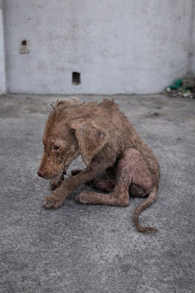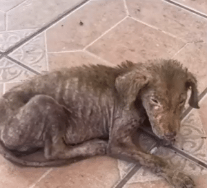 By the time rescuers arrived, it was clear how close Fenix was to giving up. His body was painfully thin, weakened by days — perhaps longer — without enough food or water. Much of his fur had fallen out, leaving his skin exposed and irritated. His small frame carried the unmistakable signs of prolonged neglect.
