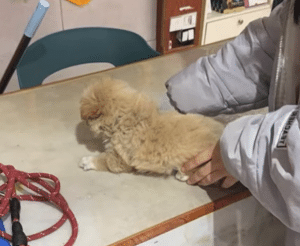 Latte was taken straight to a veterinary clinic, where the seriousness of his condition became clear. He was barely forty days old and had contracted canine coronavirus, a dangerous intestinal illness for puppies his age. Dehydration and weakness had already taken hold. Recovery would require careful attention. At home, he was treated like a newborn—kept warm, fed softened food with goat milk, given small meals, and watched constantly. At first, he barely ate. Then he nibbled. Then one day, he finished a meal.