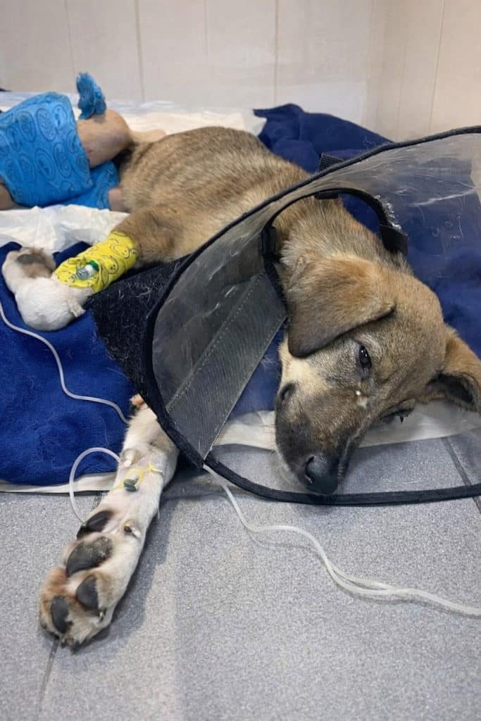 When rescuers reached her, they immediately understood how serious her condition was. Molly was rushed straight to a veterinary clinic, where further examinations revealed complications that had developed while she waited.
