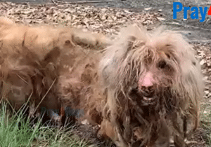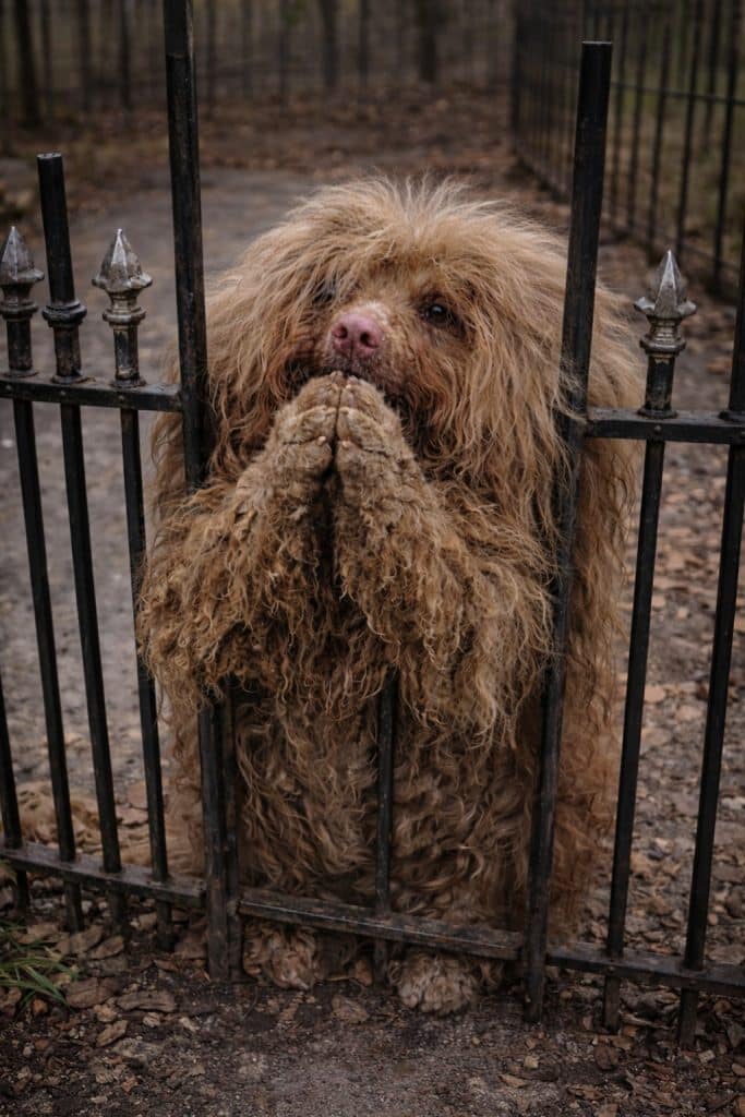 Hunger drained his strength. Illness settled in quietly. His once-healthy frame grew thin and fragile, and exhaustion followed him everywhere. His coat grew long, heavy, and tangled, thick with dirt and neglect.