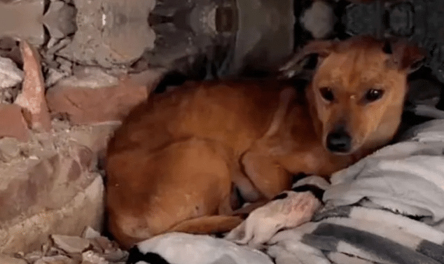 The mother dog didn’t move. Hunger meant nothing compared to keeping her puppy safe.