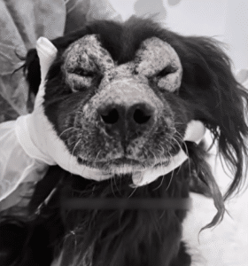 At the veterinary clinic, examinations revealed a serious bacterial infection. It likely began as something small — a minor wound, easily treatable at the start. But without care, it had spread aggressively, taking away his comfort, limiting his vision, and placing his life at risk.