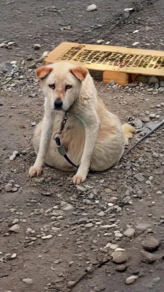 For sixteen long years, Youngji had lived outdoors, tethered by a short metal chain. Her world never changed. Summer heat baked the ground beneath her paws. Winter winds cut through her thin shelter. Rain turned dirt to mud. Snow froze it solid. While seasons passed, her life remained the same—no bed, no warmth, no gentle voice to remind her she mattered.