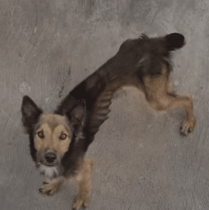 His ribs pressed sharply beneath thinning fur. Parasites drained what little strength he had left. His eyes—once meant to reflect curiosity—had dulled, carrying the look of someone who no longer expected kindness.