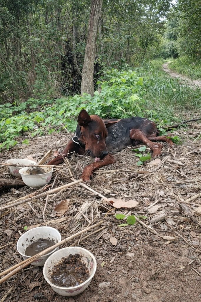 With no reliable food or water, no shade from the burning sun, and no human presence, his strength slipped away day by day. His body grew thin. His skin suffered from constant exposure. Still, he waited—quietly, faithfully—as if loyalty alone might bring his owner back.