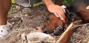 When rescuers arrived, they found a dog dangerously close to the edge—gaunt, overheated, barely responsive. The priority was immediate.