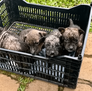 Inside were four newborn puppies, pressed tightly together. Their tiny bodies trembled as they shared what little warmth they could create. Their eyes were barely open. Their stomachs were empty. There was no mother nearby—no shelter, no explanation for why they had been left behind.