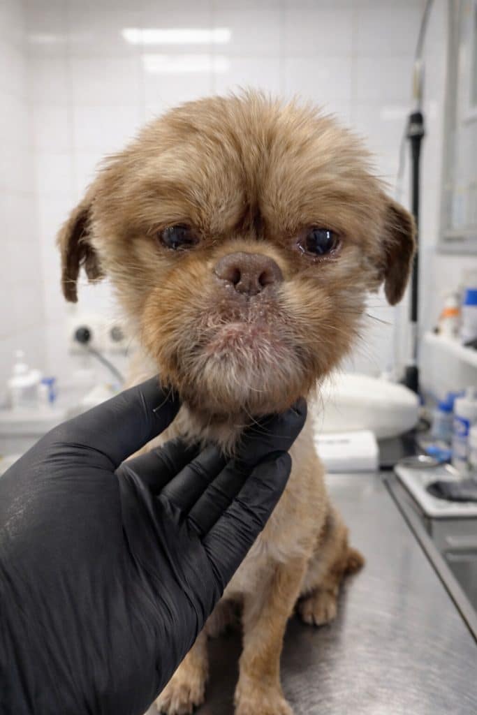 Once Fedor was brought to the veterinary clinic, the reality of his condition became clear. His body bore the marks of long hardship. Infected bite wounds covered his skin, likely from repeated encounters with other dogs while he struggled to survive on the streets. Ticks clung stubbornly to his weakened frame, draining what little energy he had left.