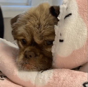 Fedor was found on a bitterly cold day, lying alone beside a quiet road. His small body was thin and fragile, barely strong enough to endure the freezing air around him. A short distance away sat an old cardboard box with a worn towel inside—perhaps placed there as an attempt at shelter, but offering little protection from the cold.