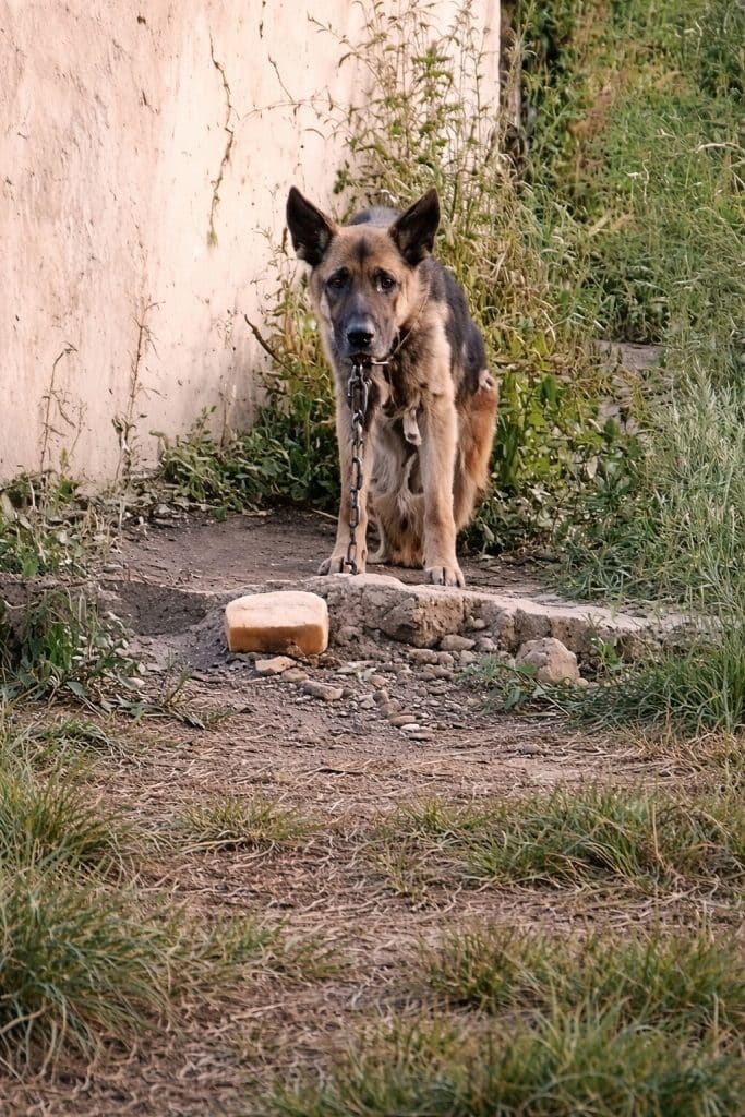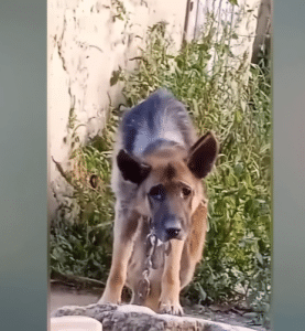 After his service ended, Chuck was passed to a new owner—someone who did not understand the responsibility that comes with caring for a dog who had already given so much. Rather than comfort, Chuck was chained outdoors. Days blurred into weeks, weeks into years. Movement was restricted. Food was inconsistent. His world shrank to the length of a chain.