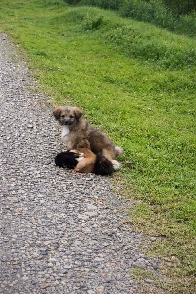 The road was quiet, the air heavy with heat. Inside a worn cardboard box left along the roadside, a mother dog lay curled tightly around her newborn puppies. The temperature had climbed close to 33°C. There was no shade. No water. No sign that anyone planned to return.