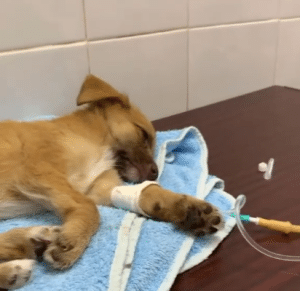 Relief did not last long. Soon after arriving, the puppies began to show signs of illness. Their tiny bodies weakened, struggling with fever and distress. The diagnosis came quietly but clearly—a severe intestinal illness.