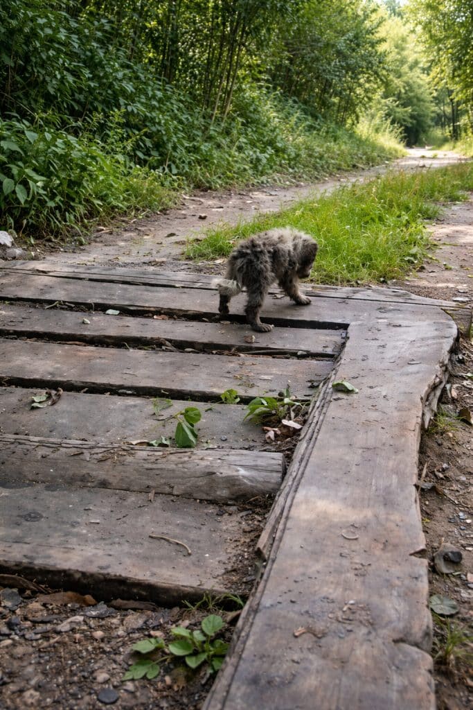 The dog—later named Teddy—was coated in mud and filth. Fleas clung to his fragile body. His breathing was shallow and uneven, as if every breath demanded effort. Days, perhaps weeks, without food or water had left him dangerously exhausted.