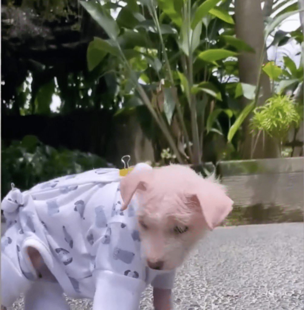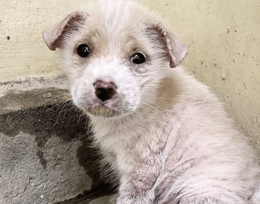 Two months after her rescue, she was nearly unrecognizable from the puppy found trembling by a wall.