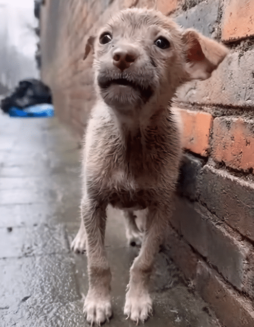 Almost no one noticed the tiny puppy curled against a brick wall nearby.