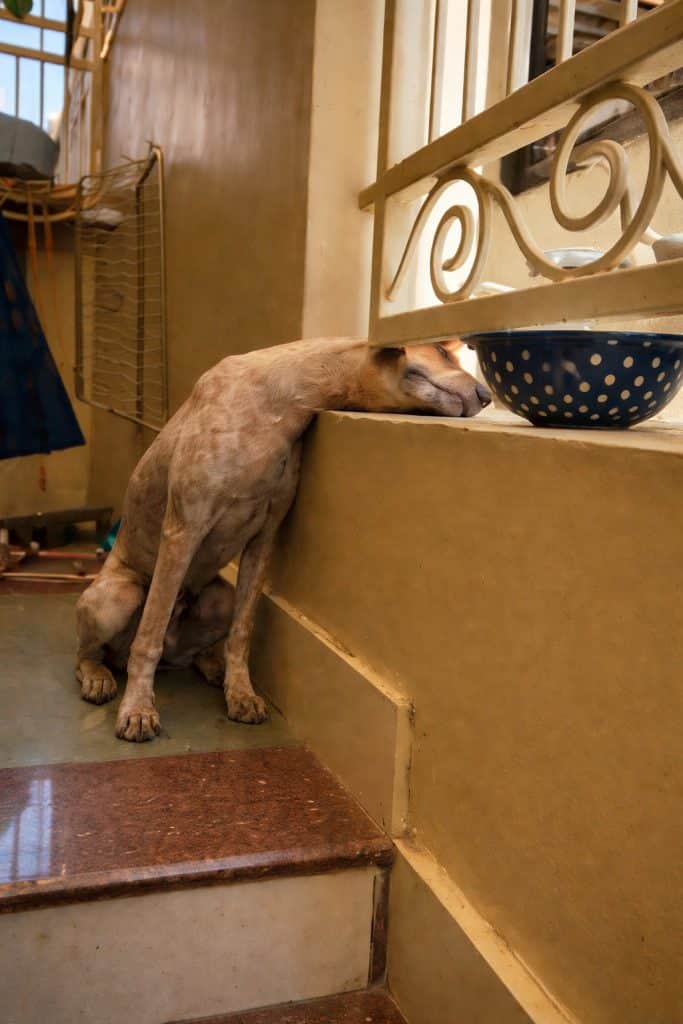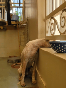 At first glance, it was hard to understand how he had ended up there. A stray dog stood frozen beside a house fence, his head wedged tightly between narrow iron bars. The space was far too small to allow movement.