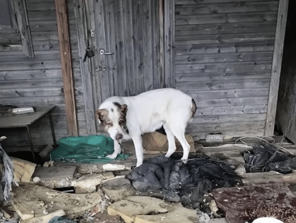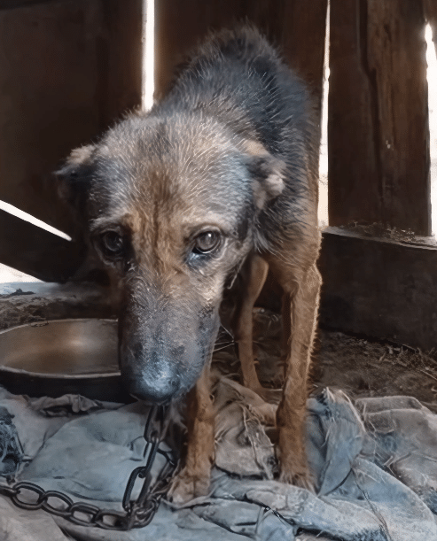 In the quiet corner of a yard, she stood day after day on the same patch of ground, bound by a short chain and surrounded by stillness. It was impossible to know exactly how long she had been there, but the signs were clear. For nearly five years, her world had not changed.