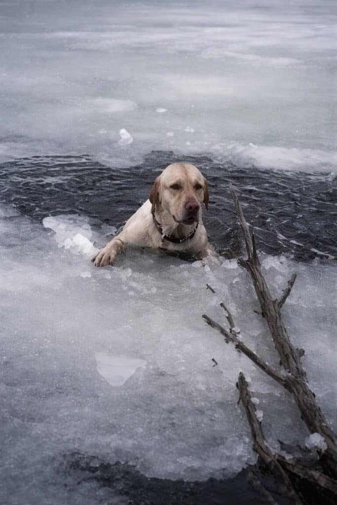 On a bitter winter day, the lake lay silent—its surface broken by jagged sheets of ice and dark, frigid water. Somewhere in the middle, a Labrador struggled to survive.