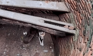 From deep inside a narrow well, a dog barked weakly—each sound echoing upward through stone and night air. The well was deep and confined, a place no animal should ever fall into. The cries were faint, strained, and filled with fear.