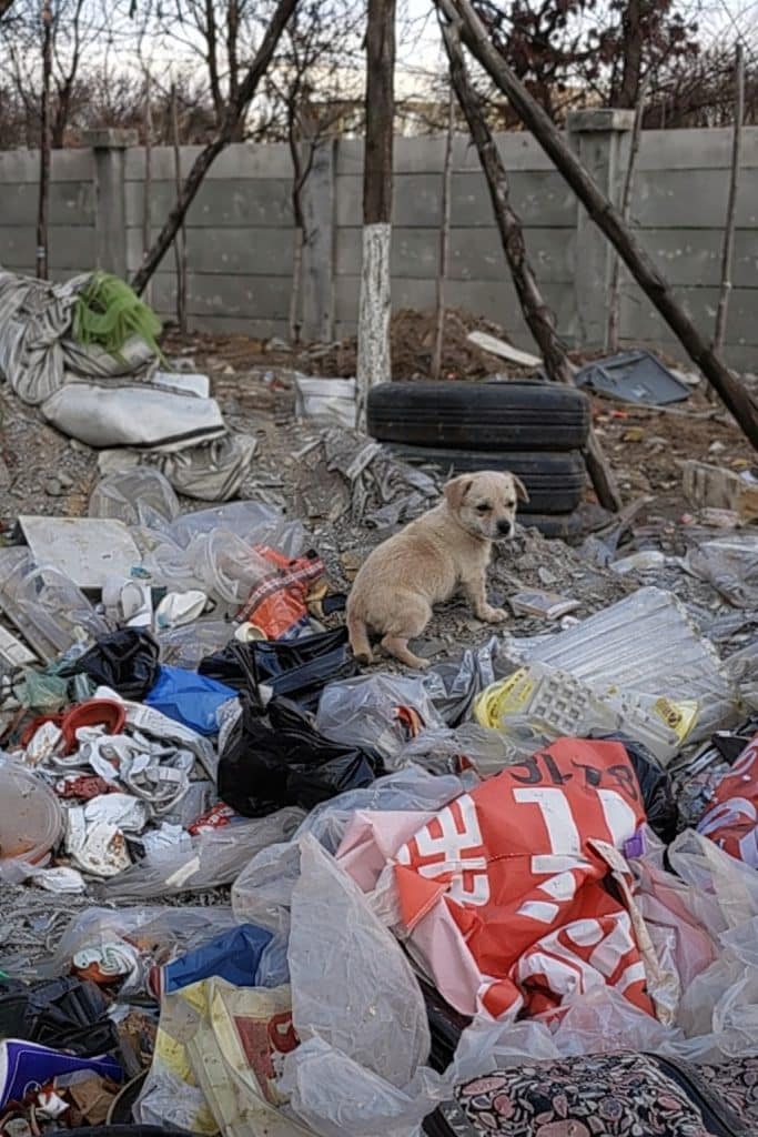 In the middle of a massive trash dump, he stood alone—no other dogs nearby, no sign of a mother or siblings. The person filming waited, watching carefully, hoping more puppies might appear. But no one came.