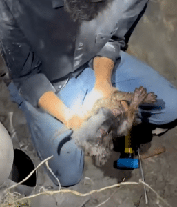 Once above ground, the puppies were immediately cleaned and checked. Their breathing was steady. Their tiny bodies slowly relaxed for the first time since falling into the darkness.
