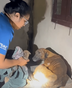 Hidden beneath the earth, inside a narrow borewell pipe, two tiny puppies had fallen deep into darkness. Far above the opening, their mother stood frozen in fear. She barked relentlessly, her cries echoing through the air — not in anger, but in desperation. It was the sound of a mother begging the world to notice her babies.