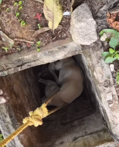 Every sound echoed. Every movement felt threatening. The tight space offered no comfort, no escape. When shapes appeared above him, the dog reacted instinctively — snapping and struggling, not out of aggression, but terror. He didn’t know help was coming. He only knew he was cornered.
