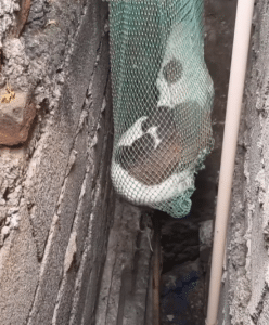 The opening was far too narrow for a person to enter safely. The dog’s fear made direct contact risky. Rushing could have caused injury — or made the situation worse. Instead of forcing a solution, the team focused on control, planning, and calm execution.