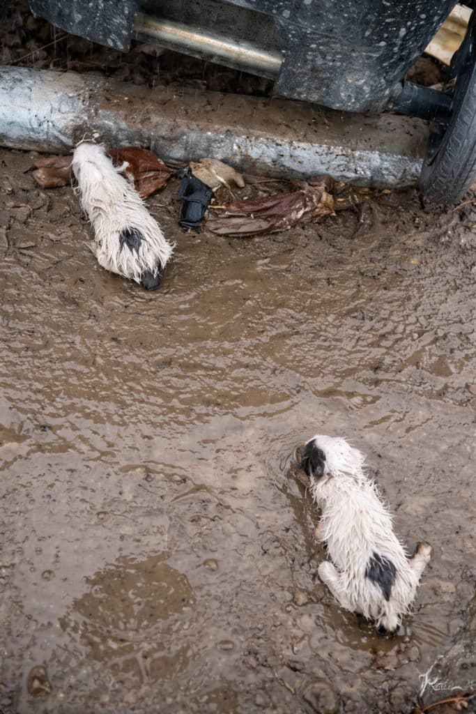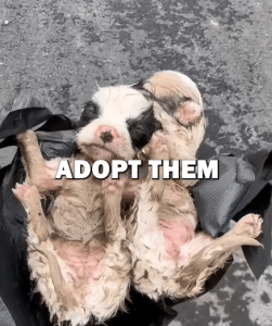 On a damp roadside, beside large trash bins most people hurried past, two tiny puppies lay huddled together. Their bodies were wet and streaked with mud, blending into the ground around them. They made no sound. They didn’t cry or try to move.