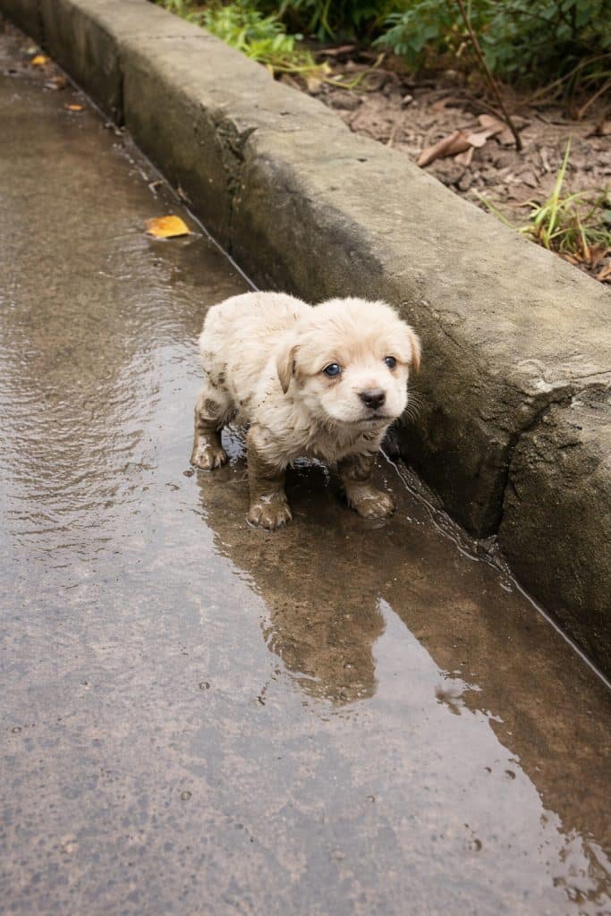 VIDEO: Left Crying on a Wet Sidewalk, This Tiny Puppy Found Safety in the Most Unexpected Way
