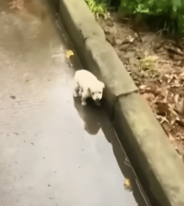 The video opens on a sidewalk still damp from the night’s rain. Everything is calm, almost still. In the middle of the frame sits a tiny white puppy, alone and shivering. His small body trembles from the cold, and soft cries slip out as he tries to understand where he is. There is no shelter nearby, no familiar scent, no sign of where he came from. Just wet pavement and uncertainty.