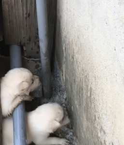 VIDEO: Two Newborn Puppies Trapped in a Narrow Gap, Crying for Help