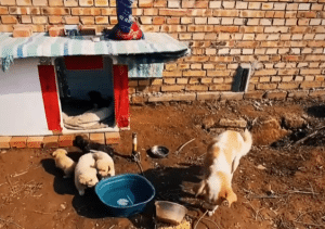The mother no longer barked when she saw his car in the distance. She stood still. She watched. Eventually, she allowed him closer. The puppies grew stronger, their tiny legs beginning to wobble as they explored the space around the tree.