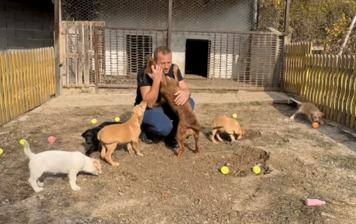 Today, the dog who once stood trapped between two walls runs freely on open ground.