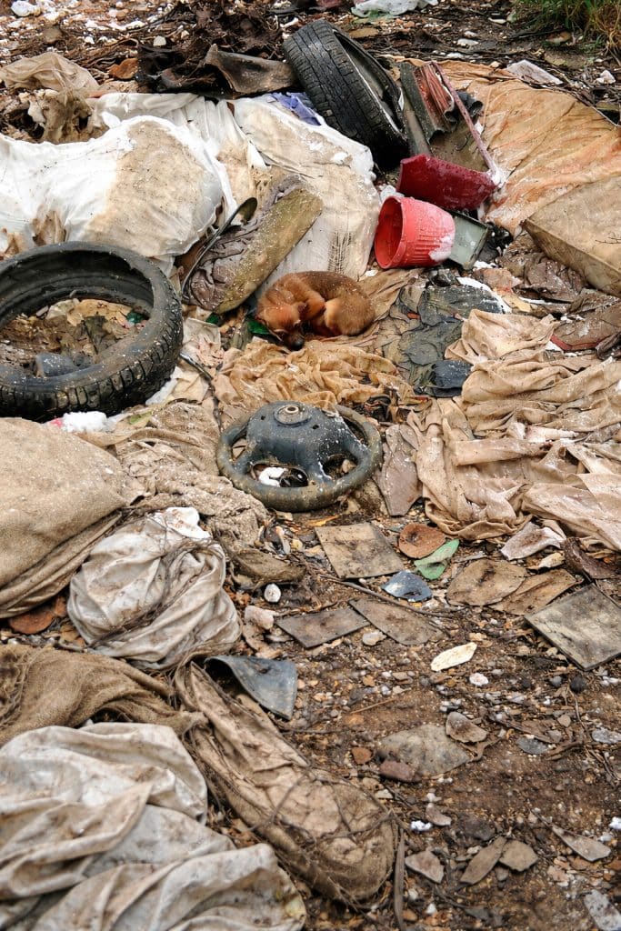 They found her near a pile of discarded debris.