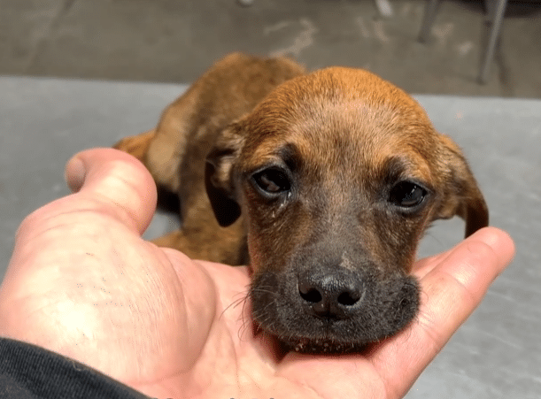 A tiny puppy had been abandoned at a garbage dump.