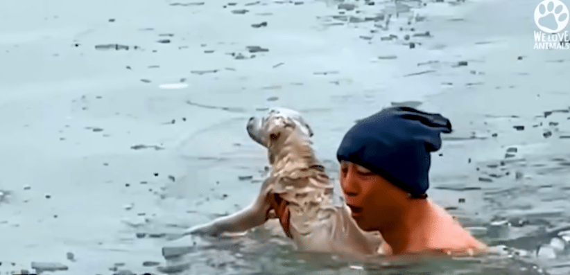 Video: Trapped in Freezing Water, This Puppy Was Seconds From Sinking — Until a Stranger Swam Out to Save Him