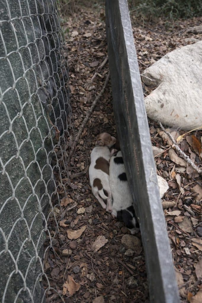 She darted away, leaving the puppies huddled together inside the tight channel.