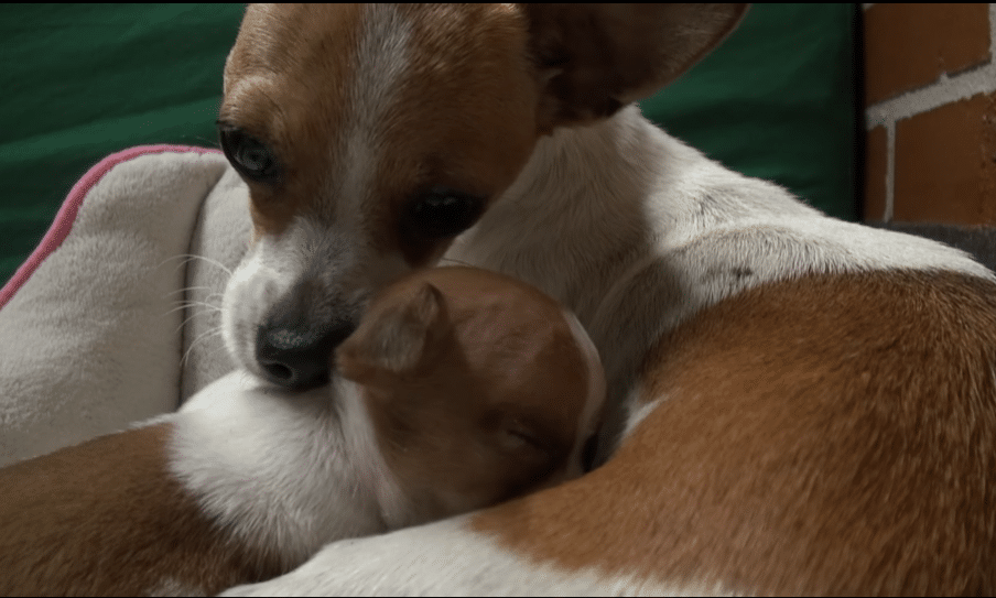 The call came into Hope For Paws about a small stray dog who had recently given birth.